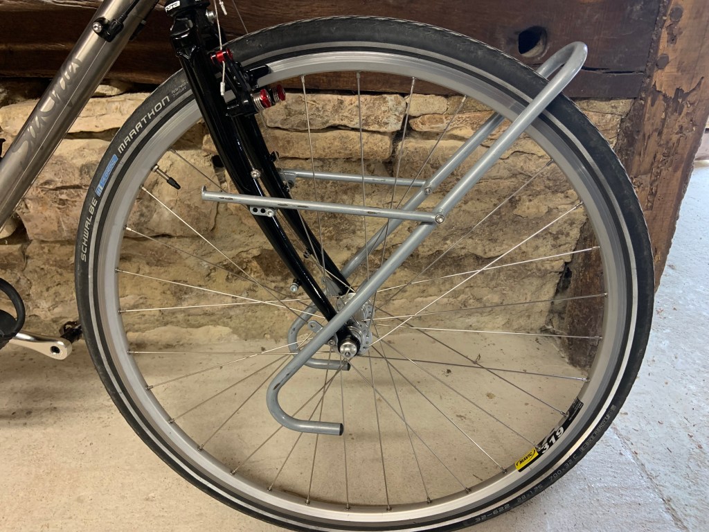 My touring bike has developed over many years of changes and upgrades. It started as a 1980’s Raleigh 531C frame, which sort of wore out and was also rather large by modern standards. I then bought a cheap alloy frame and forks (Tifosi) which I rode to Santiago de Compostella on, followed by another slightly smaller one for the Rome trip.