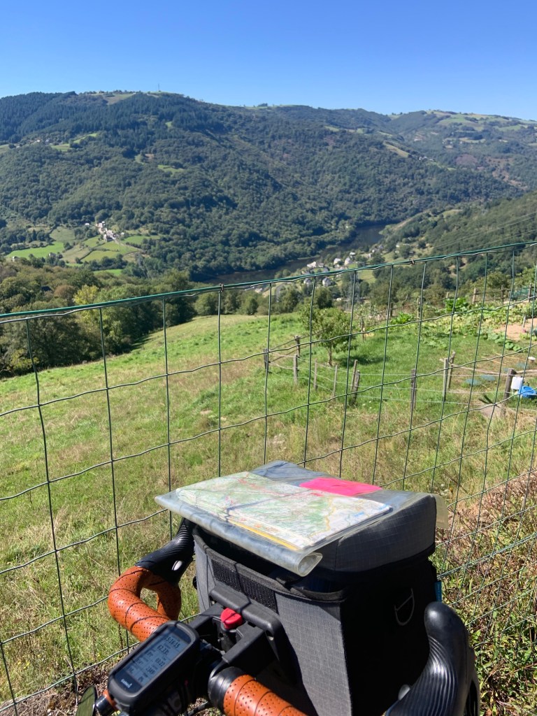 I met Jane for a sandwich at lunchtime before the climbs started at Entraygues-sur-Truyère. Steep (very steep) climb out of the valley followed by continuous climbs all the way to our overnight camp in Laguiole. I think it’s the most I’ve climbed for years!