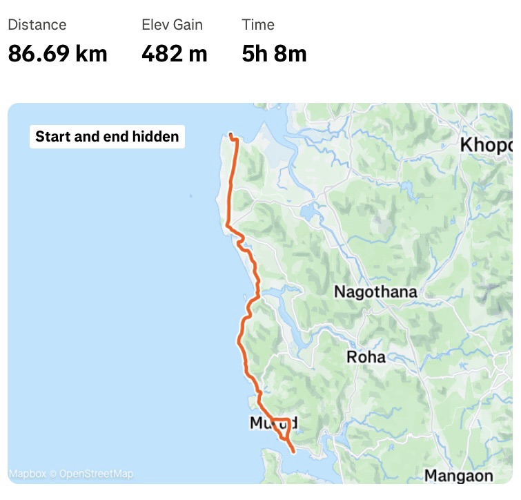 At about 1500hrs , after 67km, I arrived in Murud, where I planned to stay. After the grotty place I had spent the last three nights I fancied something a bit nicer. Disappointingly the best looking hotel was full, and despite there being several others I decided that as it was early I would push on a bit – there’ll be lots more. No there won’t. After 10km I found a log cabin retreat place, which was going to be 7000 rupees and didn’t take credit cards. Well out of my league. The net result was that I had to turn round and go back – a cycle tourist’s nightmare at the end of a hot and sweaty day. So overall my mileage could have been 20km shorter.