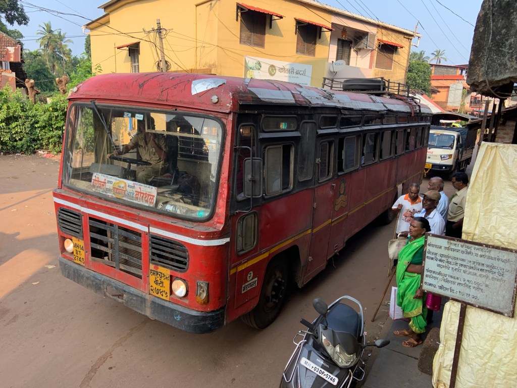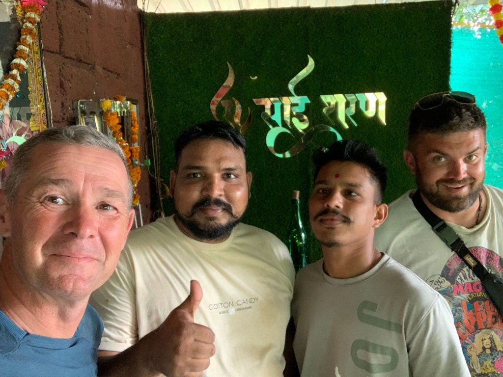 By the time we left Dighi, the temperature was brutal. My Garmin suggested 40°C. I believed it. We got some genuine roadside kindness from a doctor and his family, who stopped their car, took photos and gave us water. After an hour or so (can’t remember!), we stopped for lunch at a little place a bit off the road and I had a cashew masala, and a photo shoot with all of the restaurant staff!