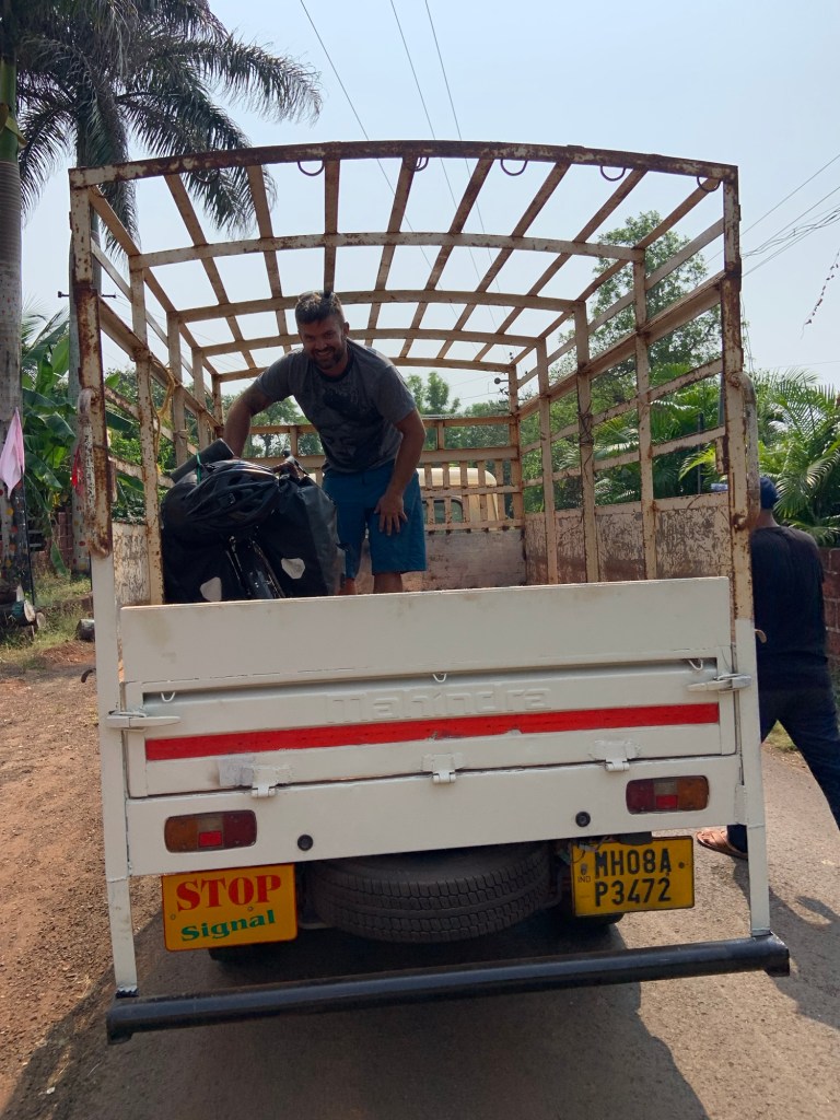 I did a bodge job with cable ties on Clayton’s pedal, which lasted about 1km. I tried! So a hitched lift, followed by a taxi ride (not for me) got Clayton to a bank and a bike shop. A better bodge job with a front axle got us back on the road. 15km to Dapoli to a ‘better’ bike shop went ok, except the bike shop was unhelpful. To the extent that they loosened the axle which fell off after a few kilometres.