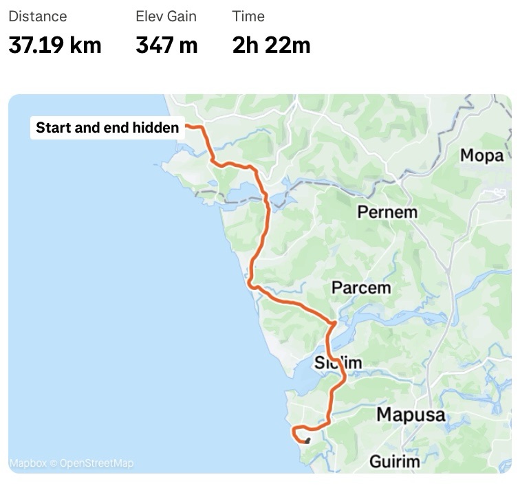 Back on the bike tomorrow. I’m looking forward to the change of scenery, as for the first time in India I won’t be following the coast. Hopefully an early start heading towards the Mollem National Park. And the hills.
