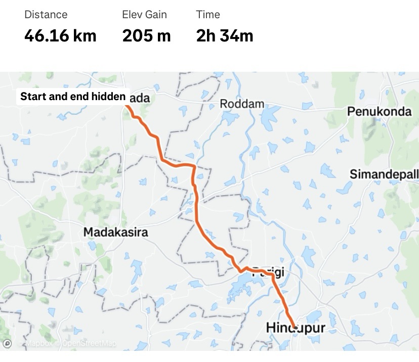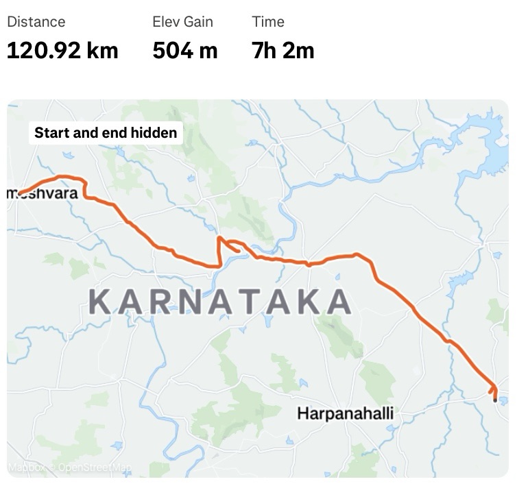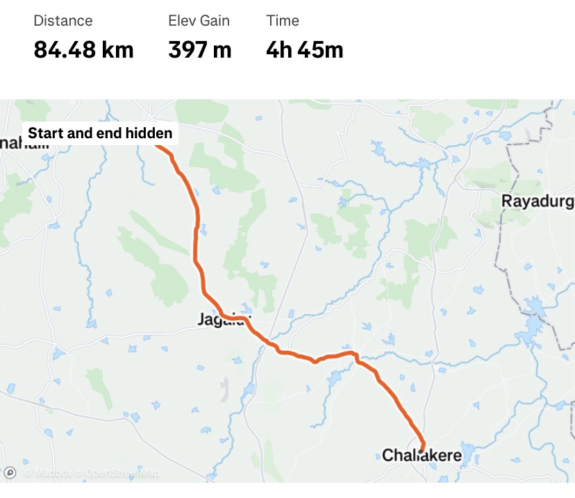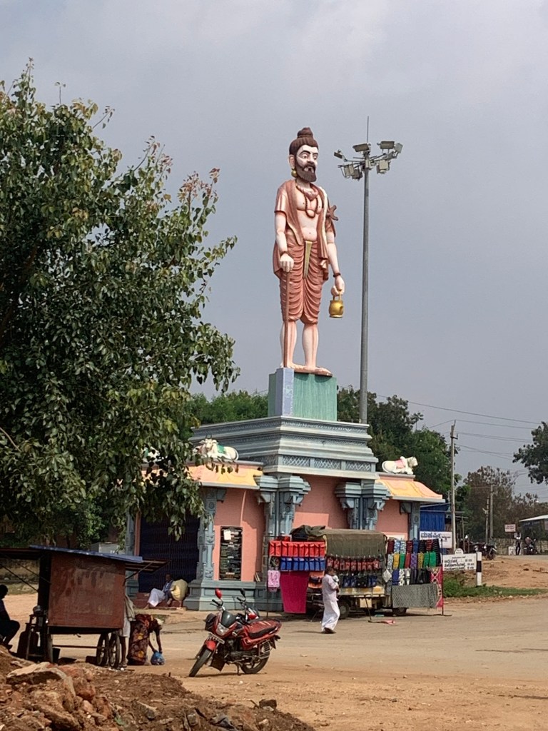 It then turned into a bit of a mileage day. Nothing of particular note scenery-wise, easy navigation, gentle climbs. The headwind was still there though. At Jagalur I picked up some water and snacks. At Nayakanahatty I filled my bottles again and had an interesting ‘chat’ with a local old guy whilst photographing the statue of Sri Guru Thipperudra Swamy. Neither of us understood a word.