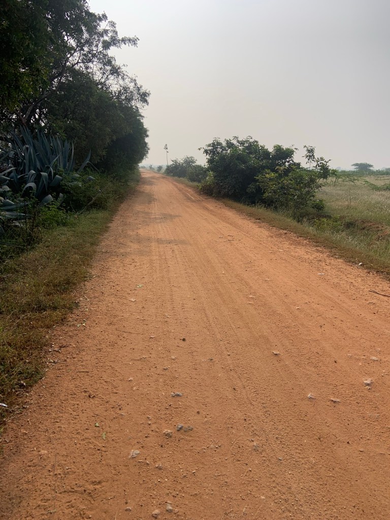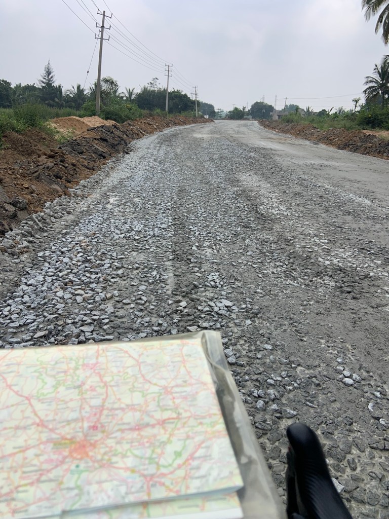 I had to ride through town to get on the right road, which gave me the opportunity to pick up some food and drink early on. After leaving Challakere there was no more navigation necessary as it was one road to Pavagada. My first stop of the day for some breakfast of potato fritters came quickly, after only about 8km in Dodderi. A small family run stall with nice food and friendly faces. Soon after, I did deviate a little bit from the main road as the minor road was a straighter line. That put me on a red gravel track for about 5km which was actually nice as it made the morning a bit more interesting. It also took me across another small dam and through a tiny little hamlet. There are a noticeable number of new palm plantations around here, which I think are for palm oil – this area is big in the oil industry. I don’t think that primary forest has been sacrificed for this purpose – at least I hope not.