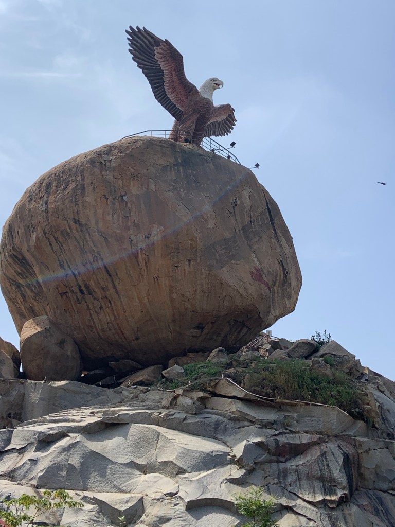 Virtually opposite the big bull is another tourist attraction. Perched on top of a massive boulder is an eagle statue. I must say I was more impressed with the geological feature than the rather cheesy eagle, but I paid my 10 rupees and climbed up the 200 steps to the top, where there were great 360° views of the countryside.