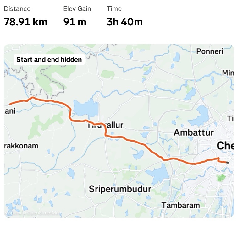 At the 60km mark it started drizzling again, but stopped after about 10 minutes. I had also reached the outskirts of Chennai, so had to properly wind back the effort, firstly because of the traffic, but also because of the frequent stops I had to make in order to navigate. The sight of a herd of cows being milked at a bus stop made me smile. The aftermath of the rain was also very evident. Lots of muddy standing water around the never ending roadworks made going even tougher and slower.