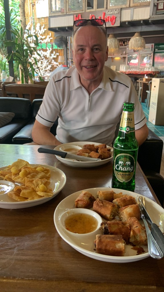 We stayed local for dinner, choosing a restaurant a couple about a hundred metres away. Pad Kra Pao and a beer (or two) then a relatively early night. Quite excited about the prospect of cycling in Thailand tomorrow.