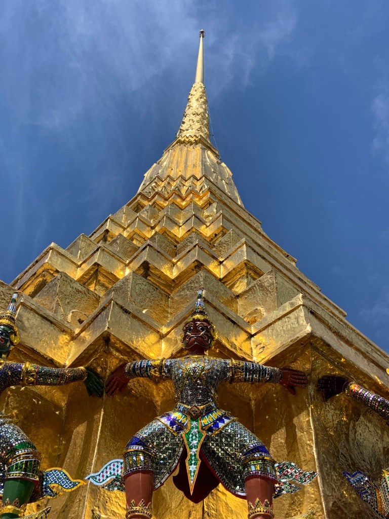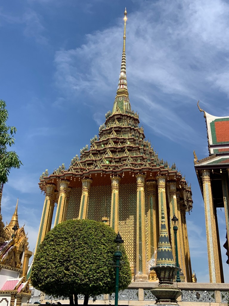 The plan for the day was to do the tourist stuff in the morning, then relax in the afternoon. So we headed off towards the Grand Palace. We were told by several tuk-tuk drivers that it was closed today as it’s the (previous) king’ birthday. I’d fallen for that before (drivers wanting to take you somewhere else), and chose to ignore them. I was justified in doing so, as the Emerald Buddha temple – the bit we really wanted to see – was open. It was also free to enter, which was a bonus, but also meant that it was very busy.