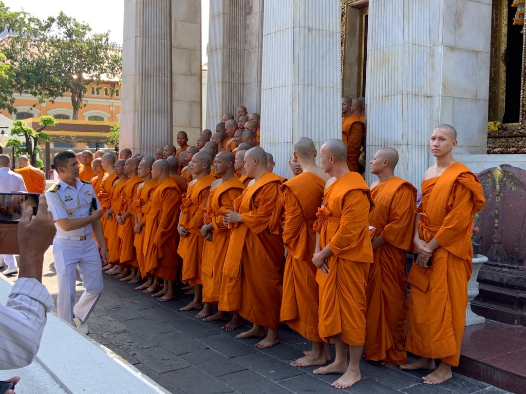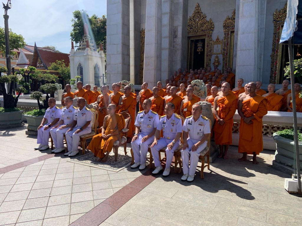 We both managed to buy a new shirt, then ventured into the Wat Bowonniwetwiharn Ratchaworawiharn temple complex, where a ceremony was taking place. It was something to do with a Thai Navy inauguration celebration, which involved a large number of Buddhist monks, and a smaller number of navy officers in uniform. I’m still not really sure what was happening, but feel privileged to have been able to witness it.