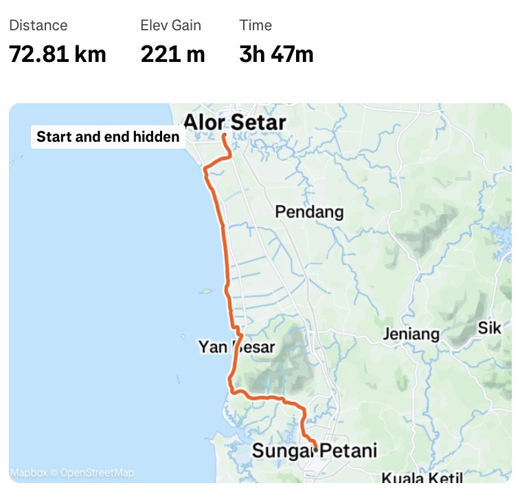 We still had over half a days ride to complete, so plodded on in the heat of the afternoon. Our route took us around Mount Jerai (1217m), which allegedly was previously an island, and then inland towards our destination of Sungai Petani. On the outskirts of town we stopped for an iced tea, with an ulterior motive of looking on-line for a hotel. When we got up to pay and leave, the owner wouldn’t take any payment from us. More kindness and generosity from the lovely Malaysian people.