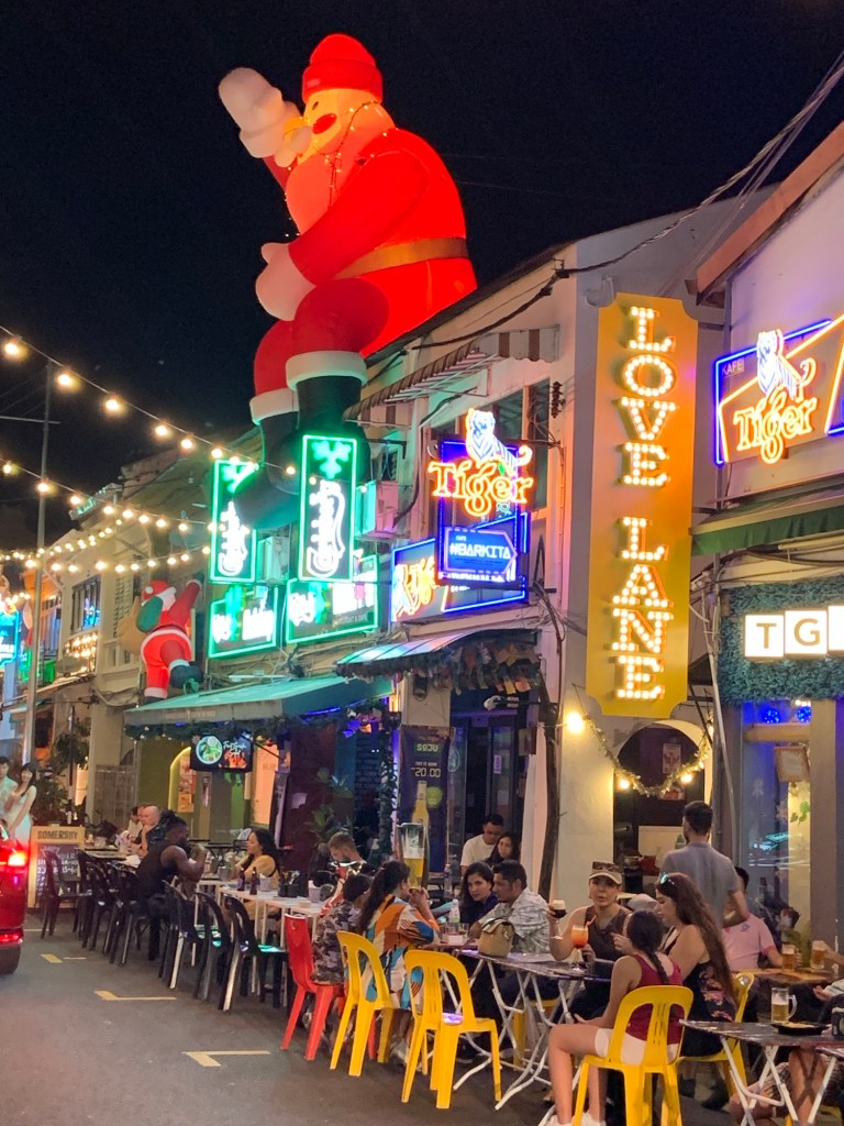 We found our chosen hotel after a bit of searching (I asked in the pharmacy), and booked in for the night. It’s a bit basic, and our room has no windows. On the plus side, the receptionist told us to put our bikes in the room. Another good result. Dinner – not that we needed much – was at a recommended restaurant a few hundred metres away. A spicy portion of mee goreng (fried noodles) went down well. We had a short walk around the town centre and its Christmas lights before heading back to the hotel.