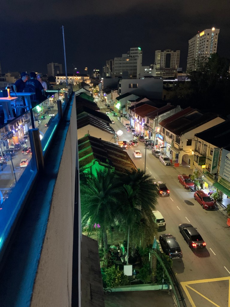 After cooling down in the room again, we ventured out for dinner. Since we are in the Indian quarter, we thought a curry seemed appropriate. I enjoyed my chicken masala – it seems ages since I’ve had one. After phone calls to family we had a dash up to the rooftop bar at our hotel to see the view. Pretty and quite festive in the dark, with all the lights around us.