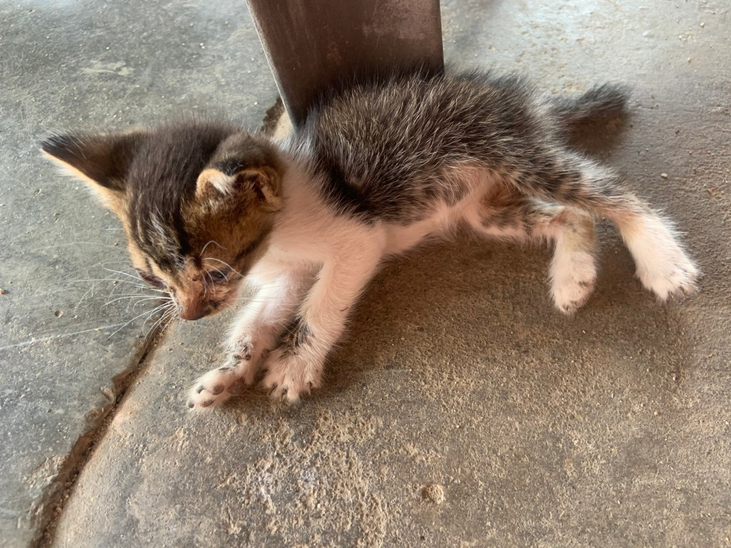 We stopped a couple more times for cold drinks, and an attempt to cool off a bit. The first time we were joined by a couple of kittens, who didn’t look in the best shape and were clearly suffering with the heat.