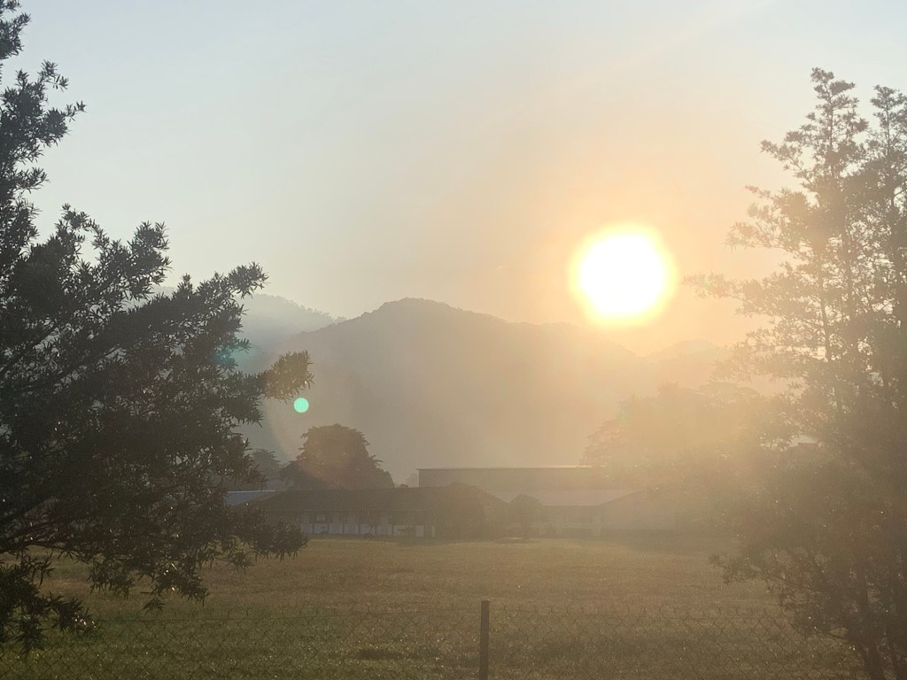 We didn’t bother with breakfast in the hotel after last night’s restaurant debacle. A bread roll, some orange juice and a coffee in my room, and we were on the road for 0800hrs. The route out of town was easy to find, the temperature was a lovely 23°C making the riding very pleasant, and the mountains to the east were beautifully shrouded in mist. The only slight downside was a fresh breeze, which, as much as it had a bit of a cooling effect, was a headwind for the majority of the day.