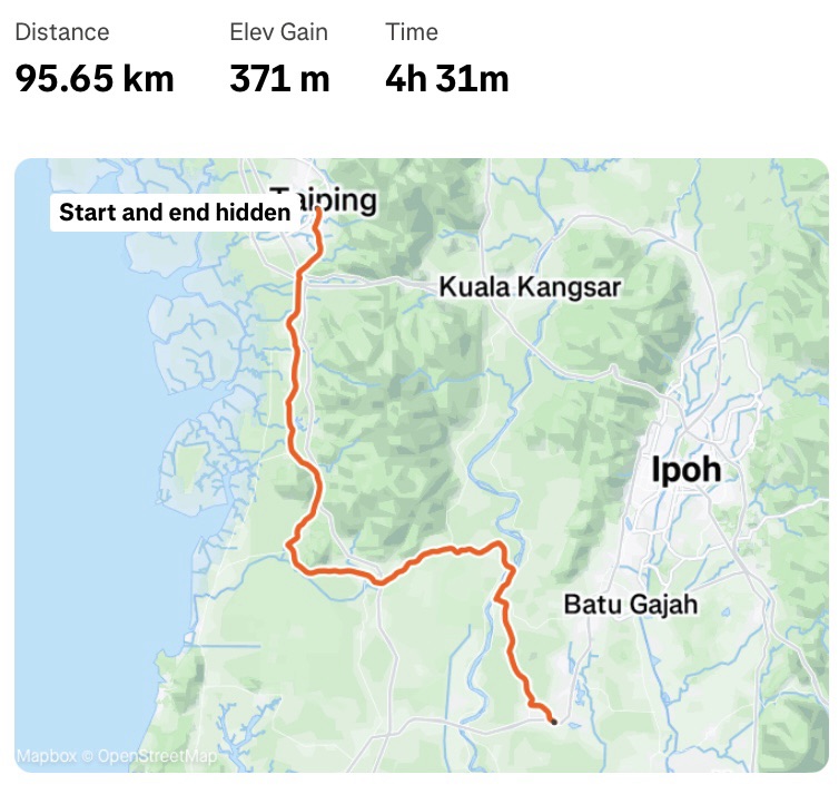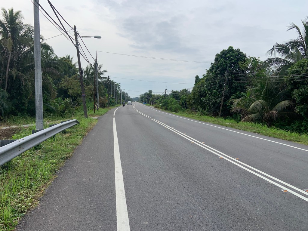 The rest of the day was therefore spent on main roads. We stopped for a roti, fried eggs and coffee at (or near) Kampung Ayer Kuning, where we were also gifted some fresh lychee. Soon after, we turned off the main road onto a marginally less main road, and stopped for some water in Kuala Bikam – a big necessity today as it was very hot. We both had readings of 37°C.