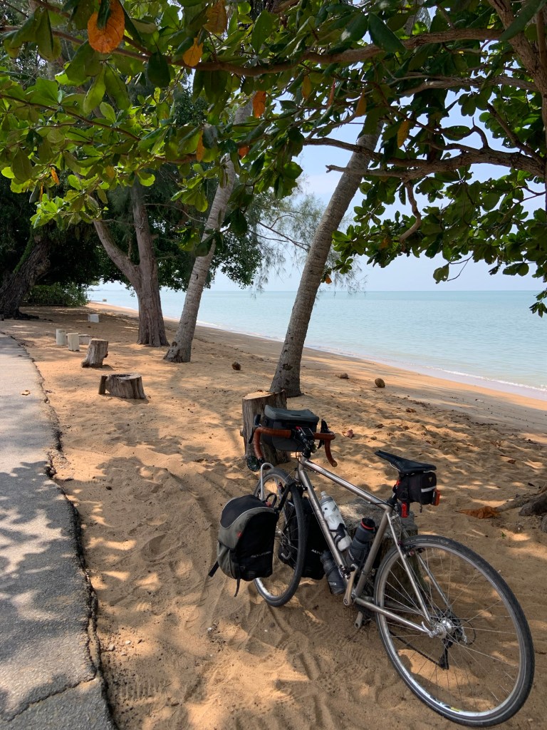 After the chicken, egg and rice we turned onto the coast road. Steve’s back had eased off a bit, but still not great. The road however was good. It was just as well that it wasn’t a hilly day today. It was nice to be riding along the coast again, with another empty beach to our right, interspersed with food and drink shacks, and small hotels on the other side of the road. Really beautiful.