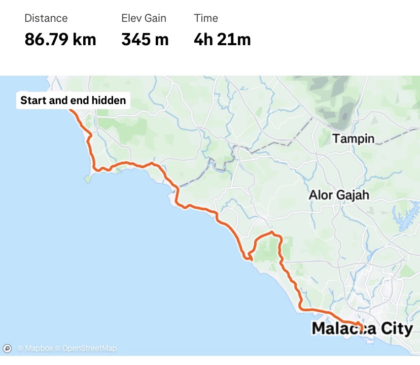 Strangely enough, I didn’t feel like eating for the rest of the ride, so by the time we were approaching Batu Pahat at 100km I was flagging.