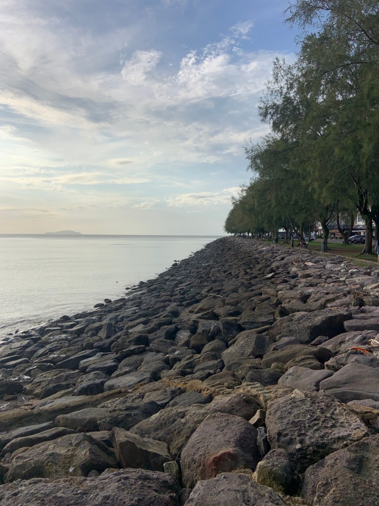 Once in Pontian we chose a nice hotel by the sea. Sadly they only had double rooms, and as much as I like Steve… Our second choice was nearby, had a twin room, breakfast included, and we have a sea view. Perfect. Apart from the fridge, which warms things up.
