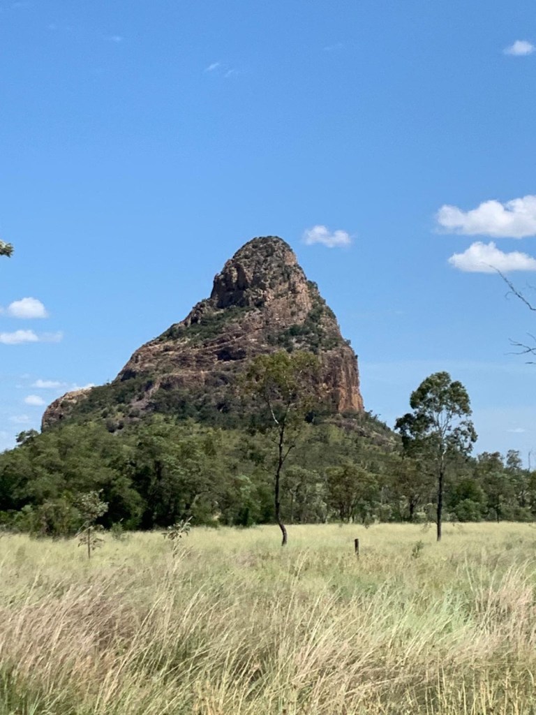 The countryside changed. We climbed up to Eton lookout, with views back over where we had just come from, then dropped down into a land where the lush greenery was less evident, rocky outcrops appeared and disappeared, signs warned of koalas in the road, I fell asleep (briefly), large coal mines were signed, exceedingly long coal trains were chugging in both directions along the tracks. It was starting to look more like the ‘outback’ that you see on TV.