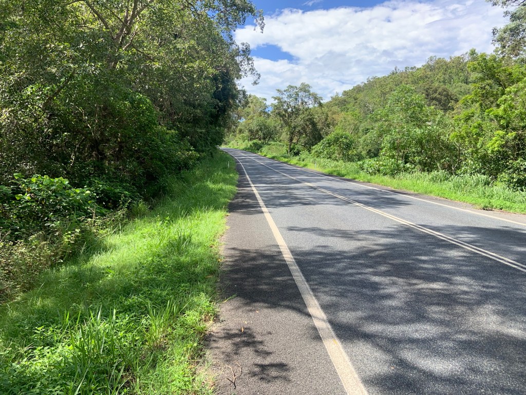 So, I got a couple of hours in before it got too hot. At least that was the plan. After faffing about doing a hard re-set of my Garmin I was on the road just after 0800hrs. It was already 28°C. It was however a lovely ride. I had about 15km back to the main road, undulating and pretty, then a nice cruise down to Eton having turned off the Bruce Highway at last. Again there were some nice little climbs over the hills I had seen in the distance over the last few days, and the traffic noise wasn’t drowning out the cacophonous sounds of birds and insects in the trees.
