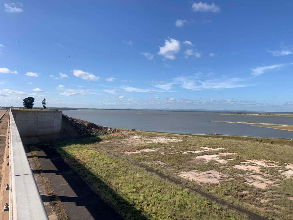 Today I managed to get away on time. Almost. After a quick cup of tea and a croissant I pootled off through the deserted town, stopping to take a photograph of the old railway station and to check directions. It is not only Sunday, but is also Australia Day, so we don’t really know what to expect regarding traffic, shop openings and the like. Nevertheless I had taken the option to detour away from the Carnarvon Highway (A7) to ride past the Maraboon Dam.