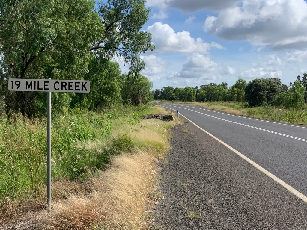 Jane caught me at 19 Mile Creek, where we had a coffee and I refilled my water bottles. We agreed to meet again in Springsure, 30km further down the road.