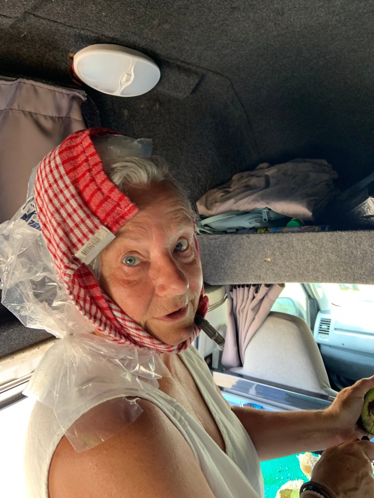 After a van refuel and a re-stock of our food cupboard we pitched up on the caravan park. Similar to most of the others we’ve been to, this time with very noisy parakeets.