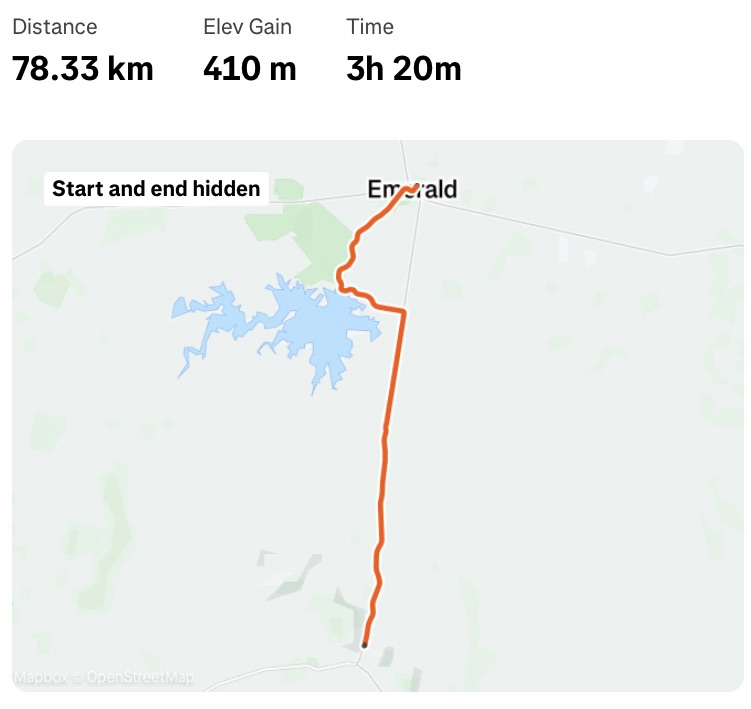 We planned to meet up every 25km or so today, mainly because there was not much in the way of villages or shops, so potentially nowhere for me to get water from. So a bit further south near Argyll we met again (52km), then once more (72km) before arriving in Rubyvale (85km) where I called it a day.