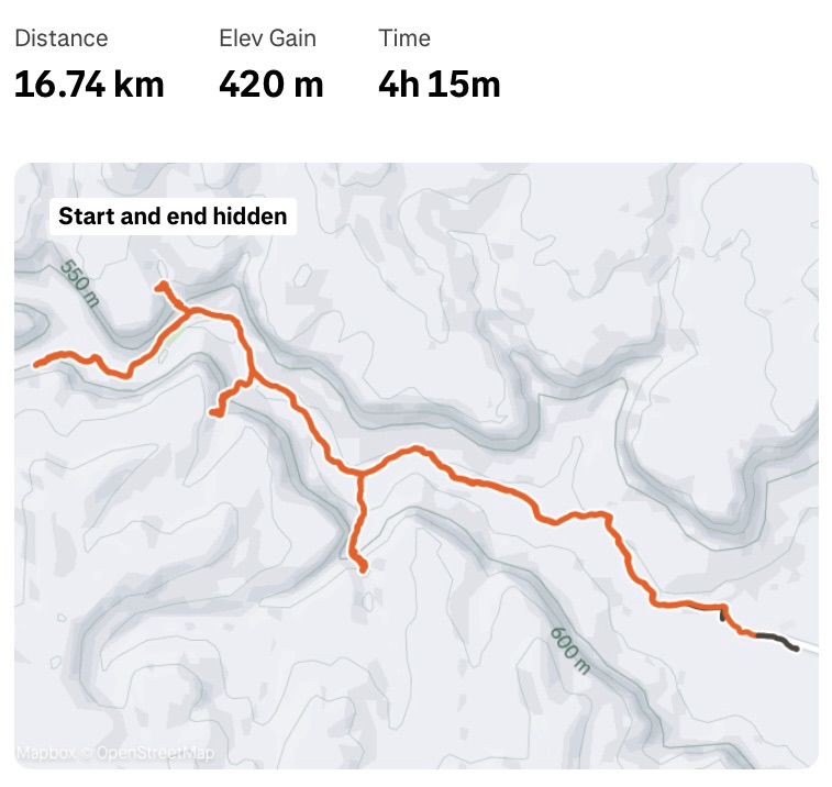 The last few kilometres back in were hard. The culmination of an early start, lots of walking, and the heat build-up. Once back at the car park, the estimated 14km was showing as 16.7km. It felt like it too. The benefit of such an early start was that by lunchtime we were back on the campsite, able to take a cool shower and recover in the shade. It was still bloomin’ hot though.