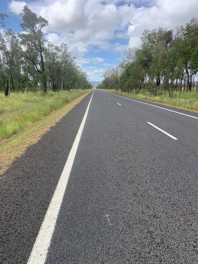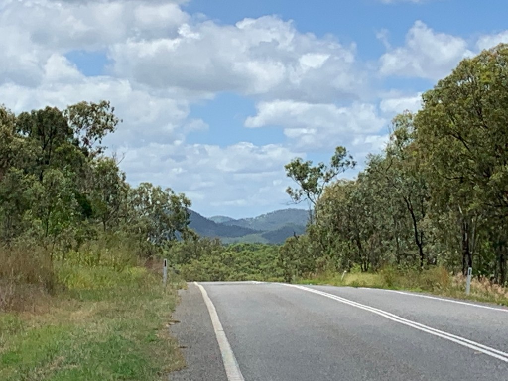 The riding was harder today. The small undulations had grown a bit, and were now 5 & 6% climbs. Constantly. But then I was cycling between the Burnett and Amamore Ranges of hills. The traffic had also increased to a point where there were regularly road trains going both ways. The hard shoulder had also all but disappeared, meaning that there wasn’t enough room in the carriageway for a road train in each direction, and me. The net result meant I ended up on the grass verge three or four times, and was having to constantly look to see what was coming and how big it was. Some of these things have 15 axles. They are huge.