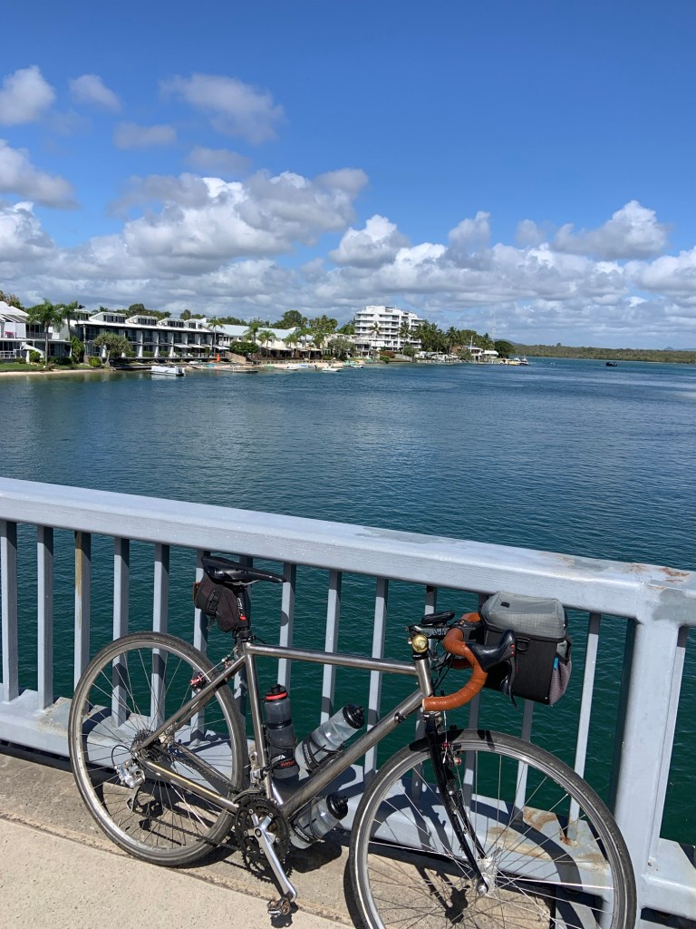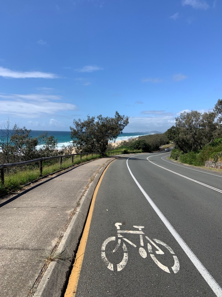 So I set off later than usual. Deliberately this time, having finally taken a dip in the sea (actually the estuary). The town of Noosa Heads is very smart, and appears affluent. There are lots of small inlet and harbour areas with rather nice looking boats moored up. To get to the town centre from the campsite there was a bit of a hill in the way – not ideal when I hadn’t really got going, but I ground up it and cruised down the other side. That set the tone for the day; lots of small climbs and descents along the coast between beaches. The cycle path was excellent. Some of the views even more so.