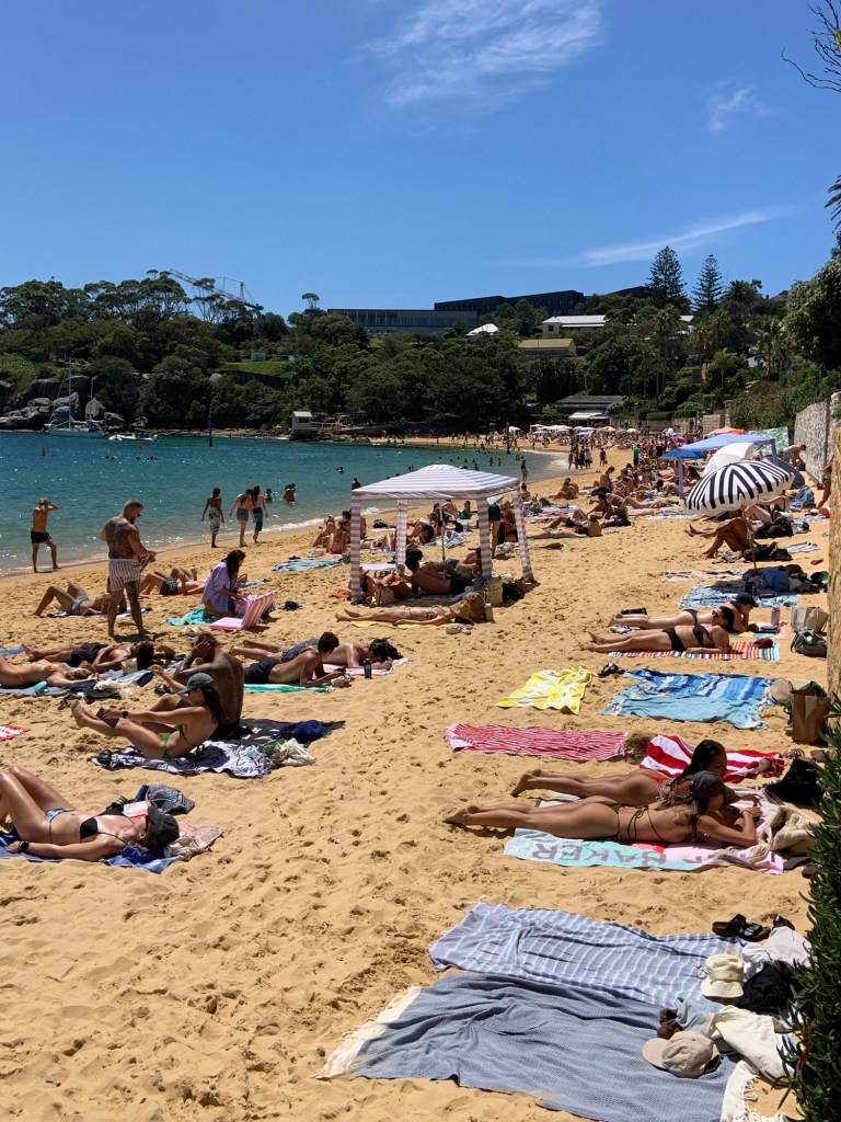 We opted for a ferry again (as we did in Brisbane), and went about half an hour out to Watson’s Bay, where we disembarked and went for a walk round to Camp Cove Beach. It was packed. By far the busiest beach we’ve seen in Australia. It was easy to see why though; very pretty, sandy, and clear blue water.