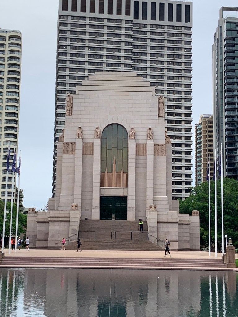 After our short liquid refreshment we carried on to St Mary’s cathedral, then the ANZAC memorial, which is quite a monolithic and sombre structure, which in some ways is fitting. It’s also surrounded by tower blocks, which take away some of the impact and gravitas.