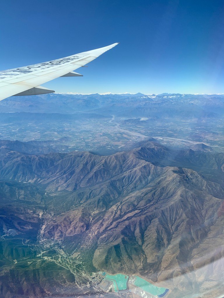 The flight was a bit late leaving. Not that it bothered me as I’ve loads of time at the other end to get sorted. The extra legroom, film entertainment and being fed three times in the 12hr 45min flight helped it to pass well. I dozed a bit, but didn’t really sleep. It was bizarre seeing the sun go down behind us, then see it come up again ahead making it feel like it is now tomorrow, yet then setting my watch back 14hrs and arriving in Santiago an hour before I set off.