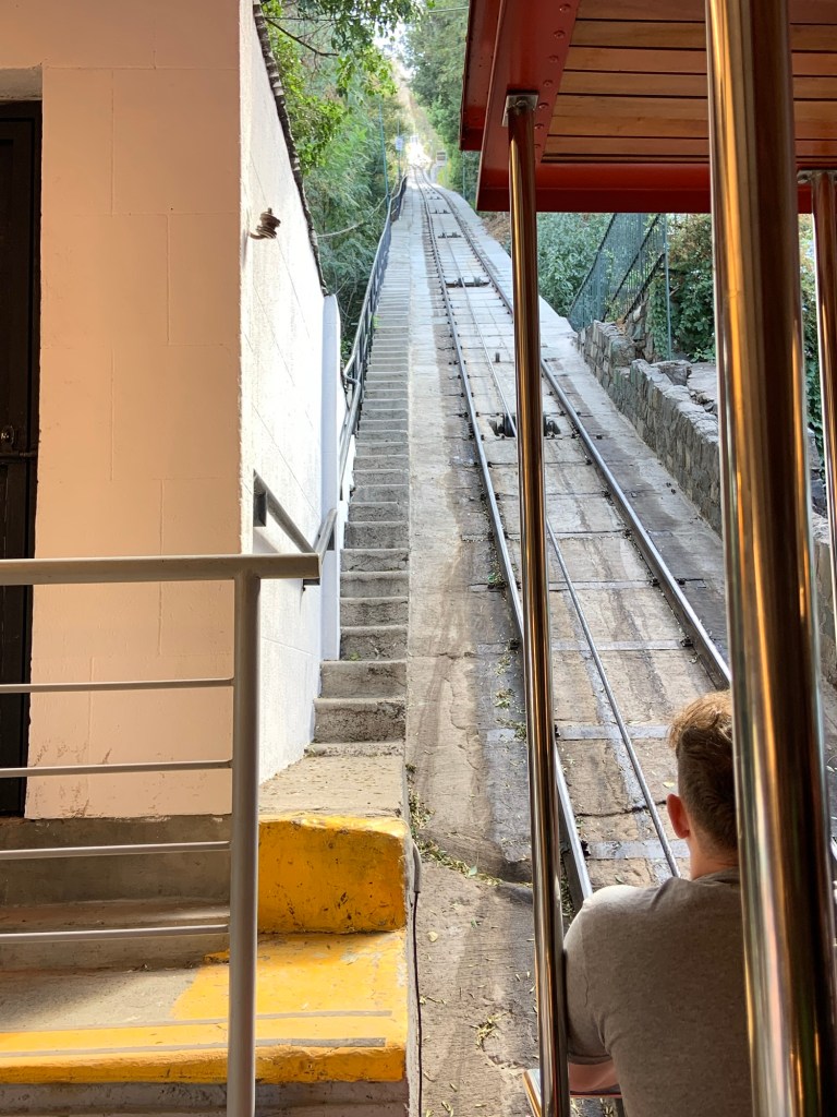 Not a bad sleep, but still awake just after 0500hrs. My body clock is gradually adjusting I think. At least I hope it is. It was sunny when I got up, but overcast by the time I’d had breakfast, although the forecast looked better by lunchtime. An earlier breakfast and coffee than yesterday, and I was out and about by 0930. I walked away from the city to the Quinta Normal park, and got the metro across town to Baquedano. From there a short walk took me to the ticket office for the funicular, where I queued for far too long for a ticket. The organisation was shocking. My ticket cost the equivalent of £4, which seemed like a bargain. I then realised that I’d been charged the over 60’s rate. Not flattering but I’ll take the discount.