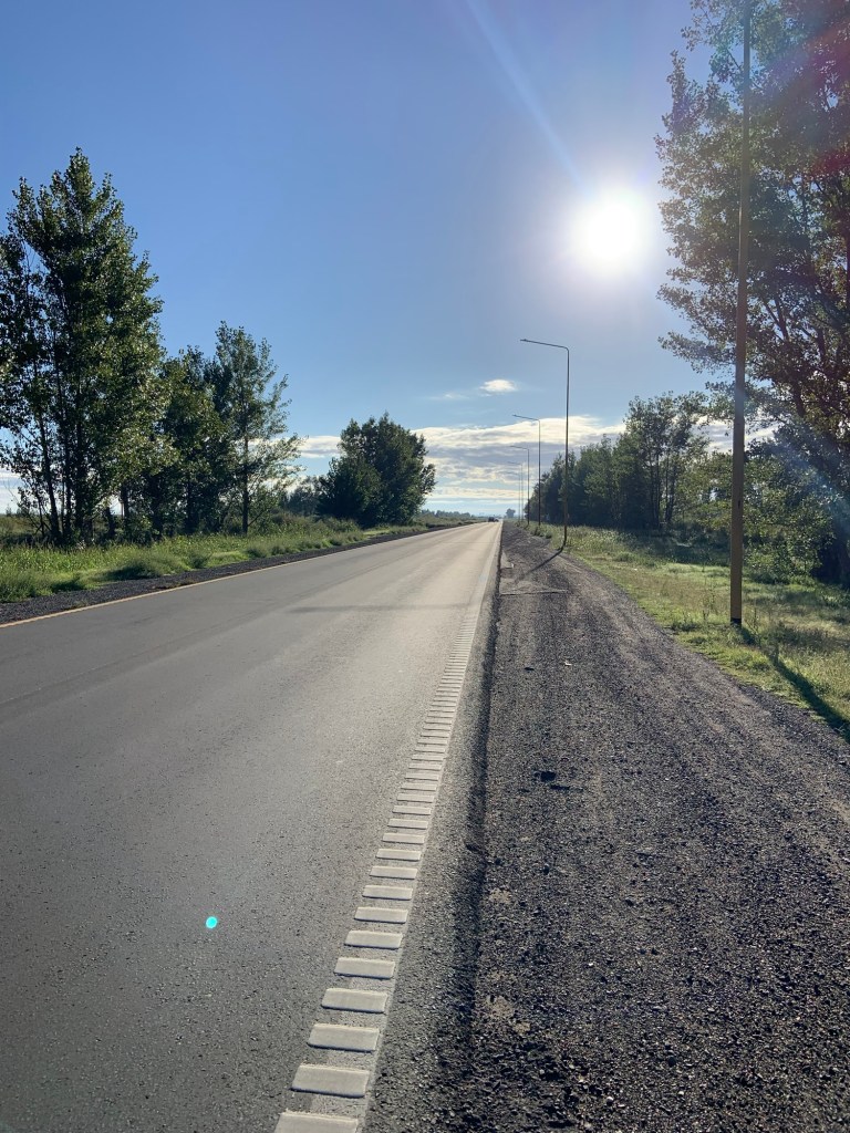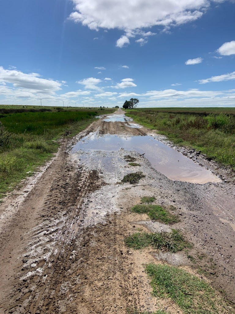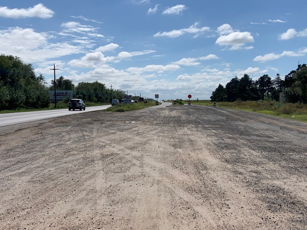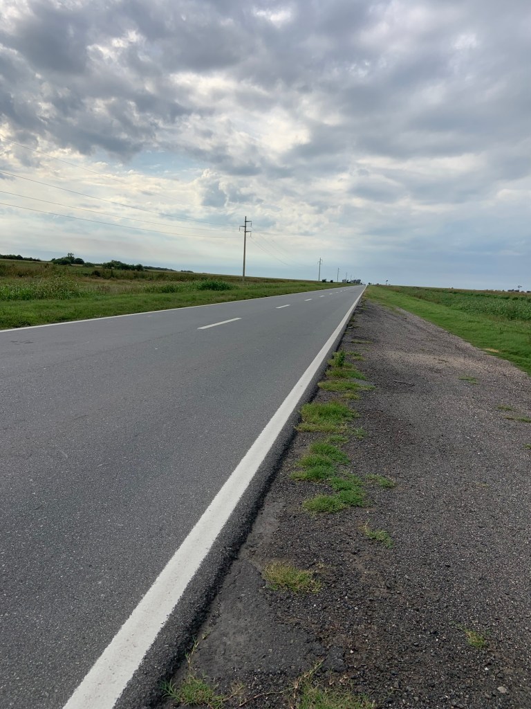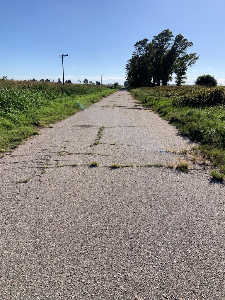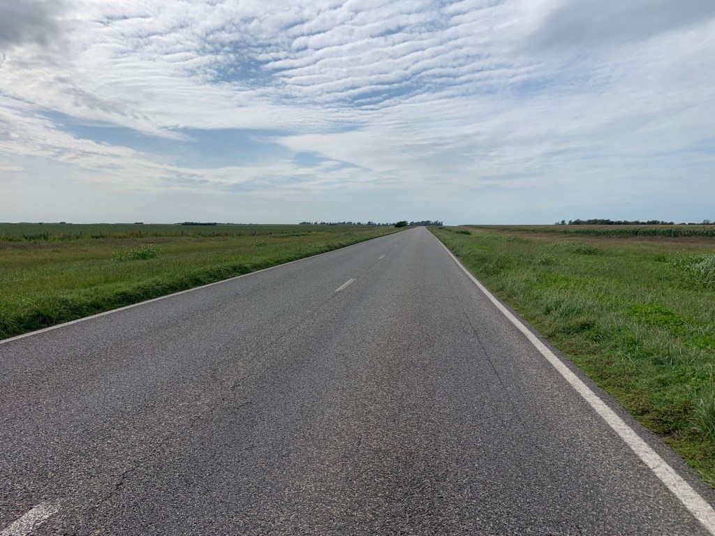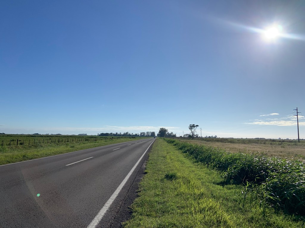 The scenery sadly hadn’t improved – just a vast expanse of flatlands, some areas with crops, others just appeared barren. I’d hoped for a coffee stop somewhere along the way, but there was nothing, not even a petrol station, so my emergency biscuit rations took a hit. I did detour slightly through the village of Villa Reducción, established in 1691 and restored in 2024 (apparently). A bizarre pace with brand new roads, a Las Malvinas memorial, and not much else. I didn’t stop. The only thing I achieved was being chased by an energetic collie dog. He gave up eventually.