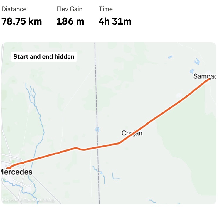 It’s a steel wire, which fortunately I’d left longer than necessary, so after a five minute roadside repair I was moving again. On the edge of Santa Catalina I was stopped at a police checkpoint, by a happy, smiling officer who wanted to know where I was going, and where I came from. I showed him my Polarsteps map (it’s been a useful visual aid) of where I’ve been so far. He took a photo of my bike (but not me) shook my hand and sent me on my way. I wish I’d taken a photo – I always forget.
