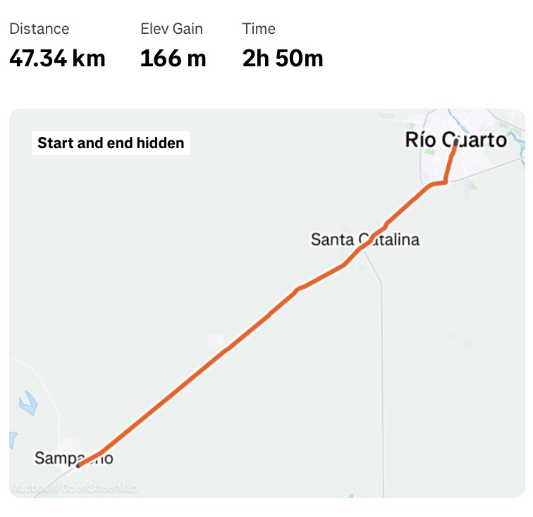 A couple of times I had to walk a few metres, and occasionally I was forced back onto the road when the track was fully overgrown, but I stuck with it for 30km until I got to Sampacho, and another petrol station. Over a sandwich and a bottle of Tango I mulled over my options. Plan A had been to stay here, and Plan B (which I had opted for this morning) was to carry on to Río Cuarto, another 50km down the road. The conditions (weather and roads) meant I was feeling quite fatigued. Looking at the overall picture and the time I have left, I’m not in a massive hurry – partly because of my bus escapade – so I reverted to plan A and have booked into another 1970s hotel. It’s clean, really cheap (the equivalent of about £16), and breakfast is included. I’ll do the 50km tomorrow morning, and hopefully avoid the bulk of the traffic.