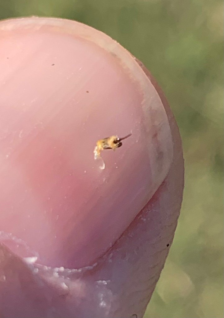 The first thing that upset my equilibrium a bit (but not much) was being stung in the forehead by something the flew into the lining of my helmet. Probably a bee, as it left its sting behind. It bloody hurt. Once I’d pulled the sting out and taken a picture of it I carried on, with a sore head.