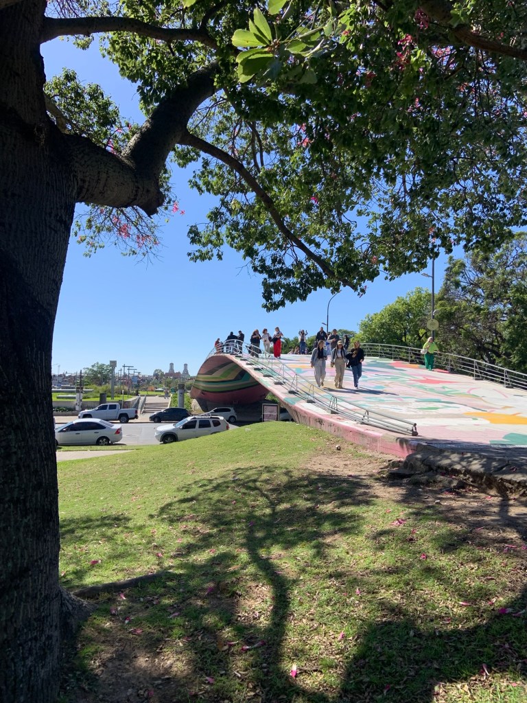 After an hour of getting lost amongst the departed, I found my way back out into the land of the living, had a coffee and strolled around the adjacent market. Similar to the one I went to last weekend, it was full of art, jewellery, and tourist stuff. Not only is it adjacent to the tourist ‘attraction’ of the cemetery, but is also nearer to the cruise ship dock. Am I being cynical? It was nice though, and forced me to walk further, ending up near to the National Museum of Fine Art and an impressive university building, accessible by walking across a ‘rainbow bridge’.